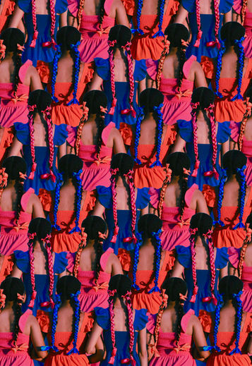 Taking Up Space (2024) is a large scale photo collage installation featuring Sarahi Jimenez, Karina Gudino, and Vanessa Gudino. The composition fills the frame with repeated images of their backs, their long braided hair cascading down. This repetition asserts their presence unapologetically, symbolizing strength, resilience, and the power of occupying space as Mexican American women. The piece draws inspiration from the magazines I grew up with as a young girl, where I rarely saw women who looked like me or my friends. Instead, white women dominated the covers. By enlarging the presence of my friends, this work challenges those exclusions and insists that Chicana women deserve visibility.